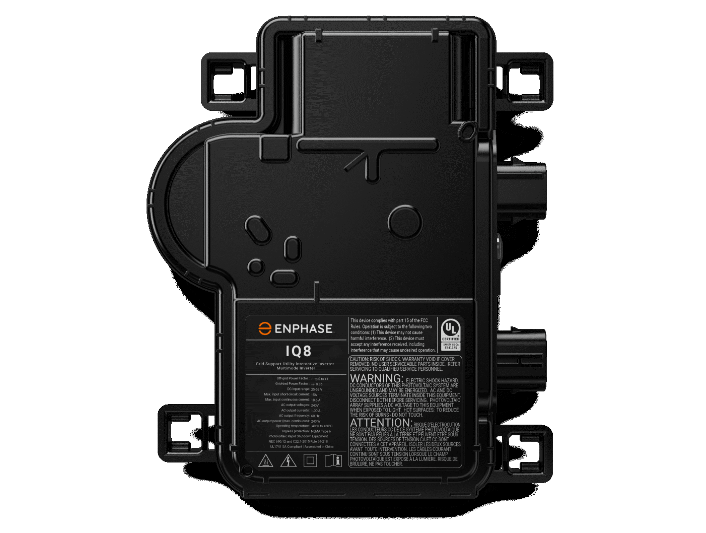 Microinverters tie directly to the low-voltage DC module, enhancing homeowner safety and eliminating the possibility of high-voltage “arc” fires.